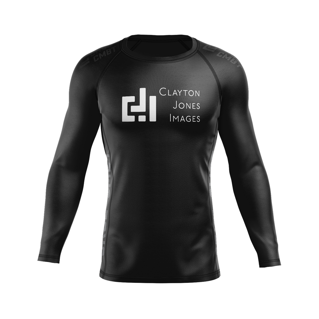 Clayton Jones Images men's rash guard Standard Issue, white on black