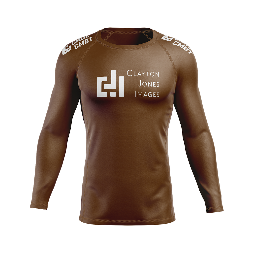 Clayton Jones Images men's rash guard Standard Issue, white on brown