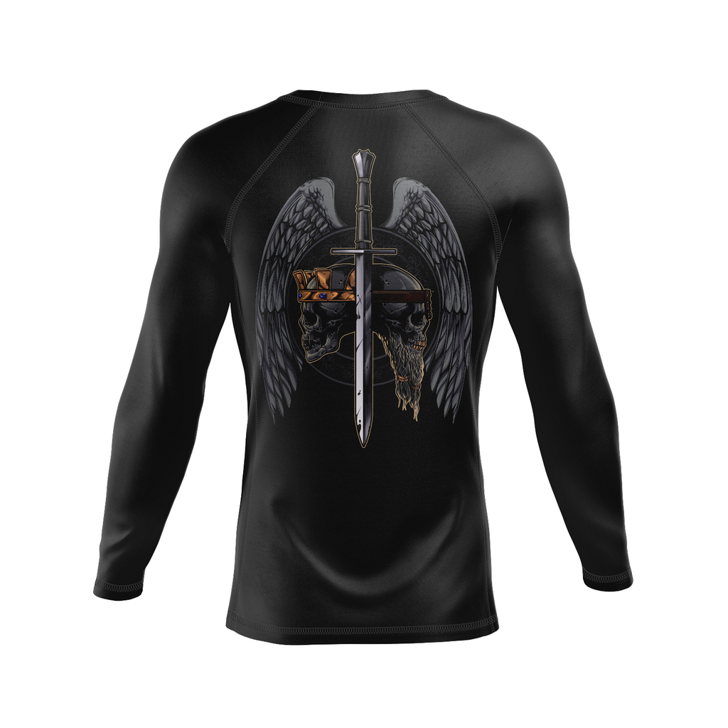 Deeds of Arms men's rash guard Kings and Commoners, black